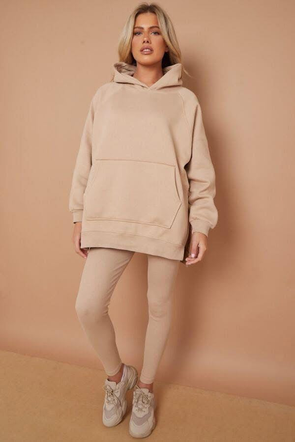 Beautiful cotton 2 piece set in forest green oversized split sides hoody and high waisted ribbed leggings.