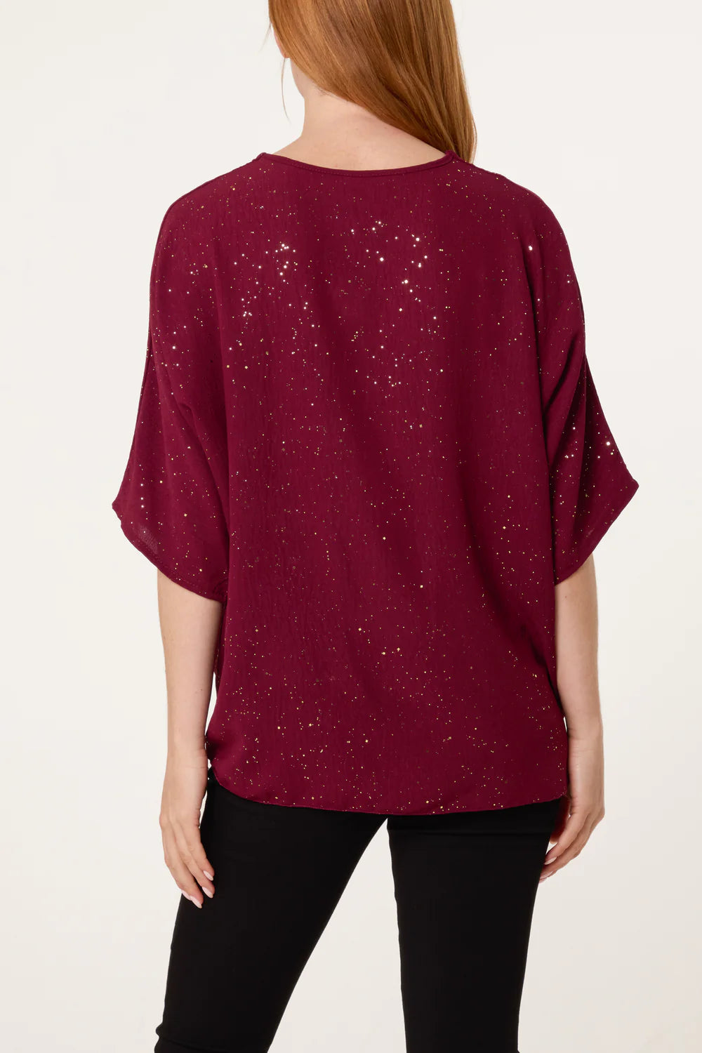 Made in Italy, glitter knot front top.    60% Polyester, 35% Viscose, 5% Elastane One Size (8-16UK)
